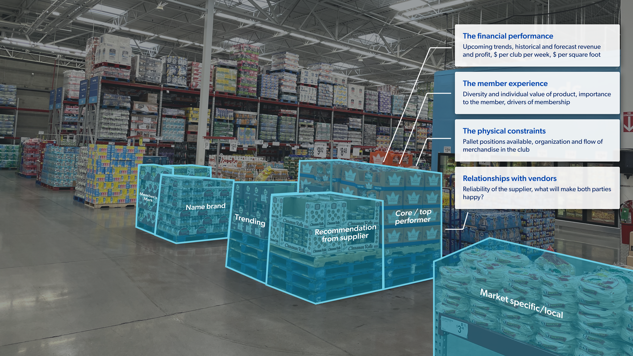 Merchants actually run this business across over 600 Sam’s Club locations, and each club needs a slightly different, unique set of items to curate the perfect member experience, due to different demographics, trends, and available space. There is no one-size-fits-all approach.