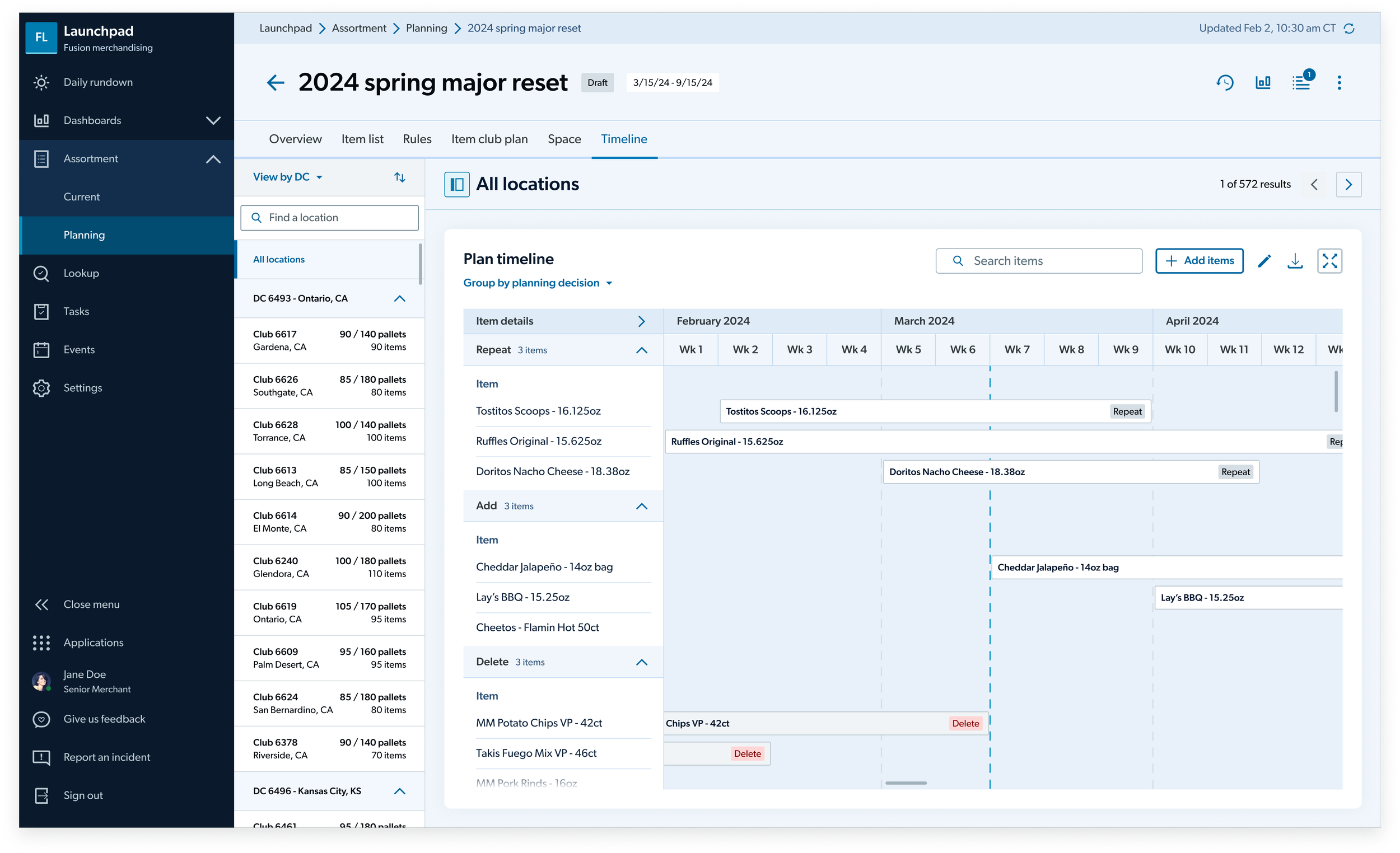 Planning for a major reset where merchants reconsider their entire assortment to on-the-fly, minor changes where they are replacing an item at a single club.