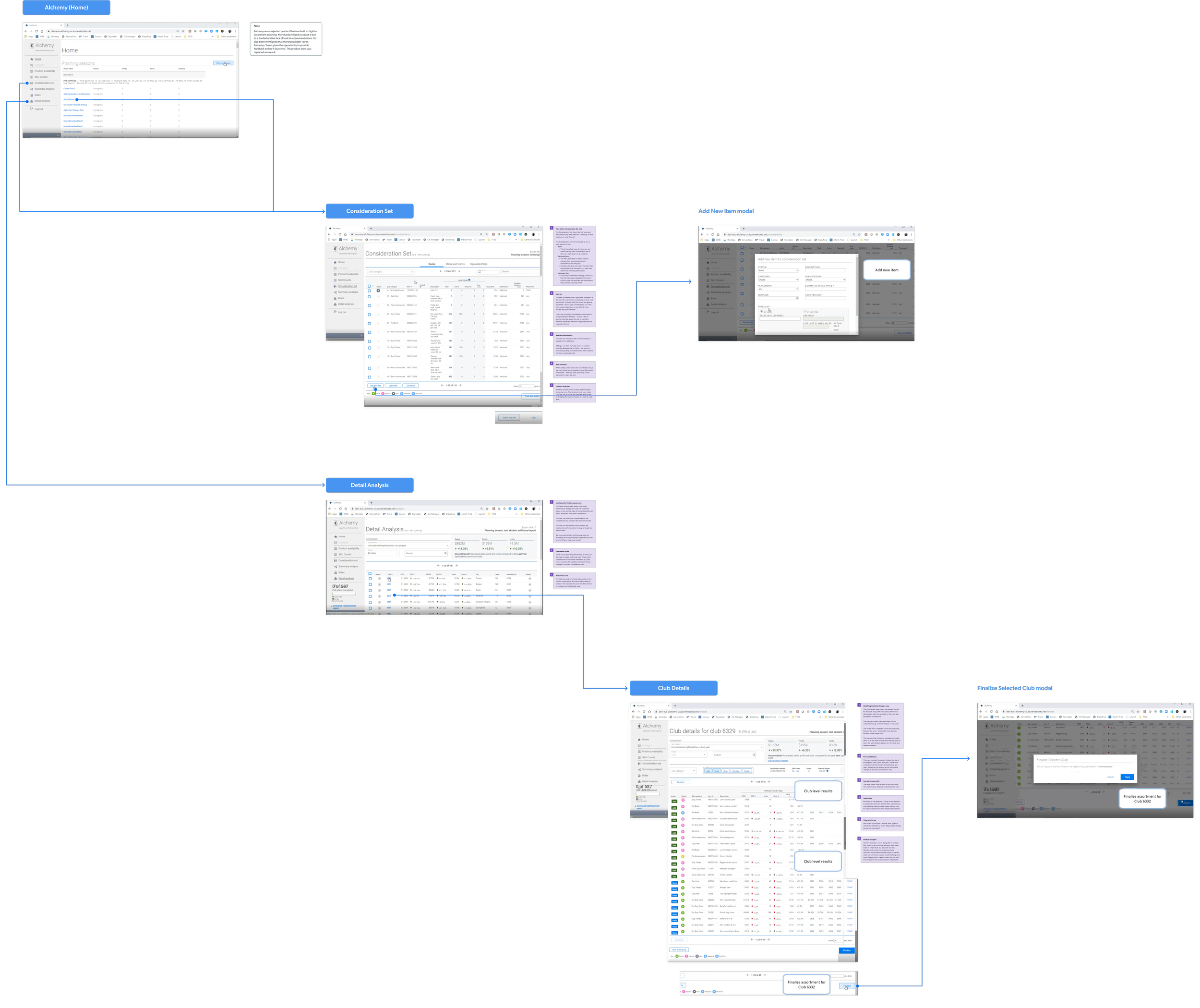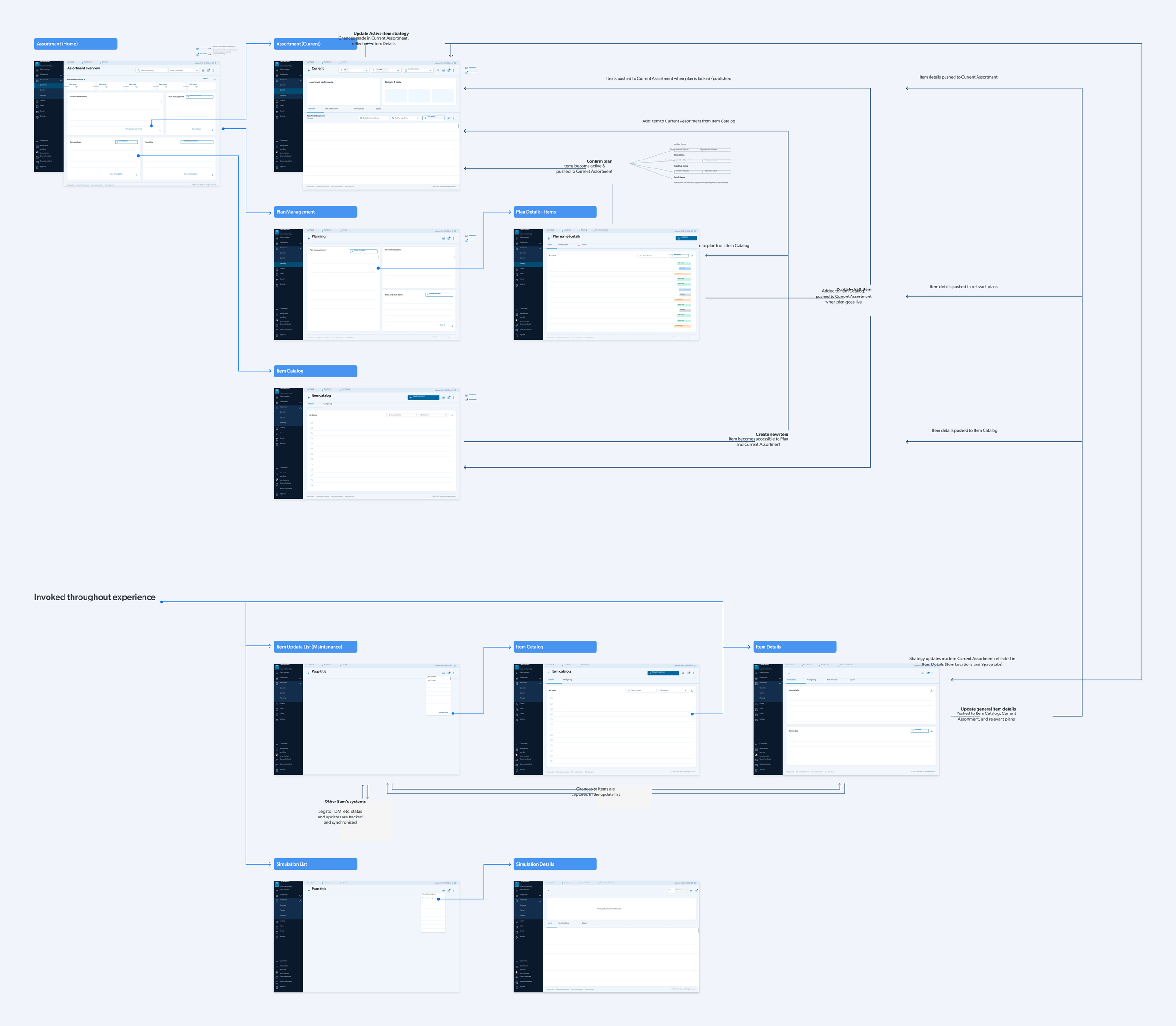 Through our documentation auditing and user research, we gathered a rich understanding of how complex it really is to plan an assortment at a major retailer like Sam’s Club. We illustrated what we found and discussed with our stakeholders throughout discovery debriefs to align on what are the challenges we’ll need to work around.