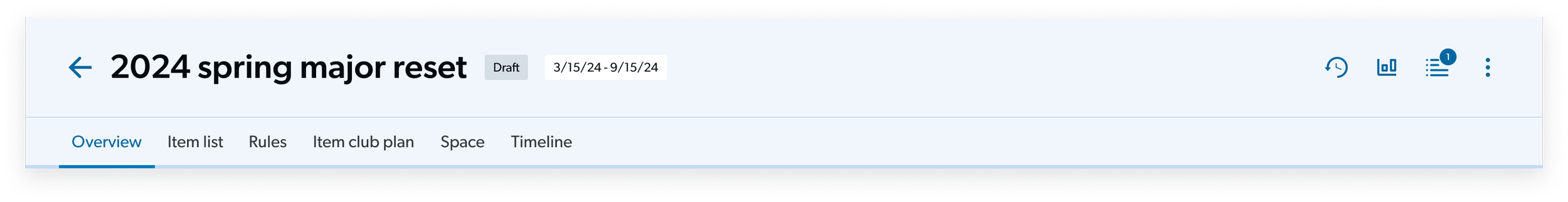 The first few spaces in the Planning tool provide the top-level understanding of how their plan is tracking as a whole—the merchant’s budgets and goals, milestones, item set-up, strategic guidelines, and all the items currently in the plan in different stages.