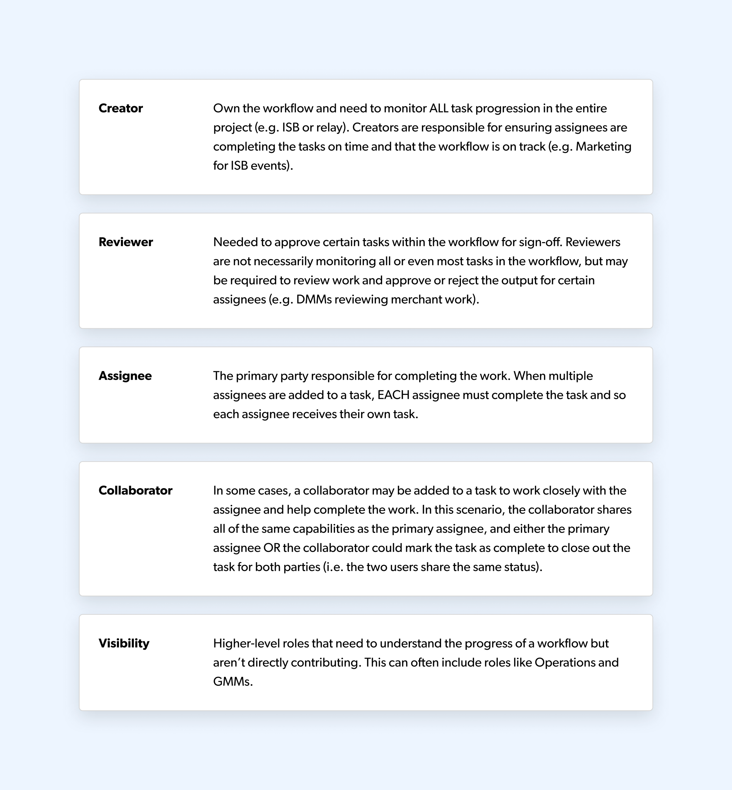 So we created a model where assigning a single task actually spawns off duplicate tasks and subtasks to each individual contributor so they can complete it on their own, and allowed different user roles access to viewing workflows at different scopes, from granular to roll-up views.