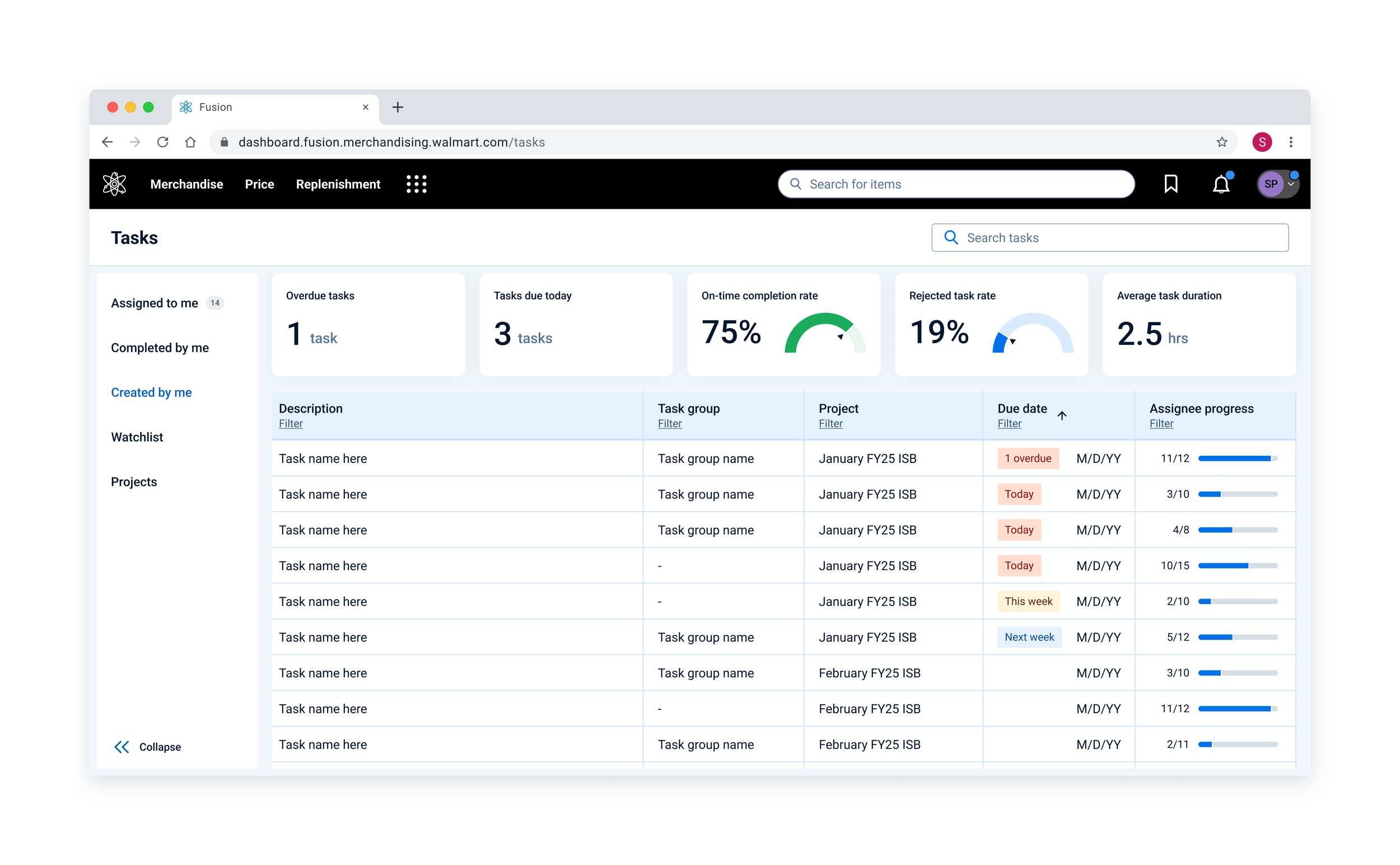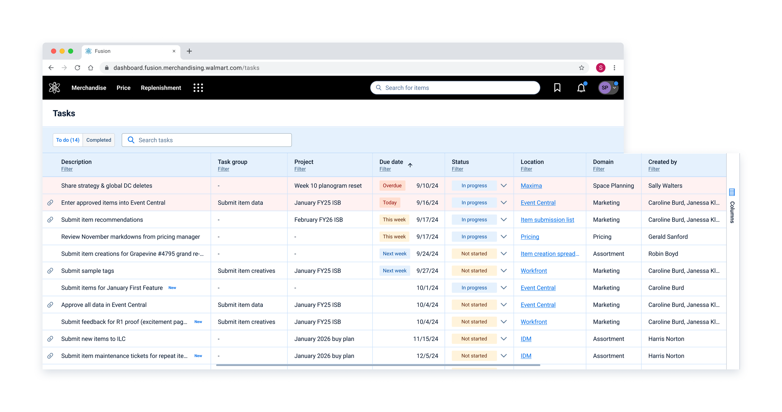 We knew that we were never going to replace jotting down a to-do list on a notepad for all day-to-day happenings, but the intent was to get the critical deadlines from key workflows, like marketing event preparation and planogram creation, into one place to help merchants stay on top of work that’s being asked of them when there are crucial downstream effects.