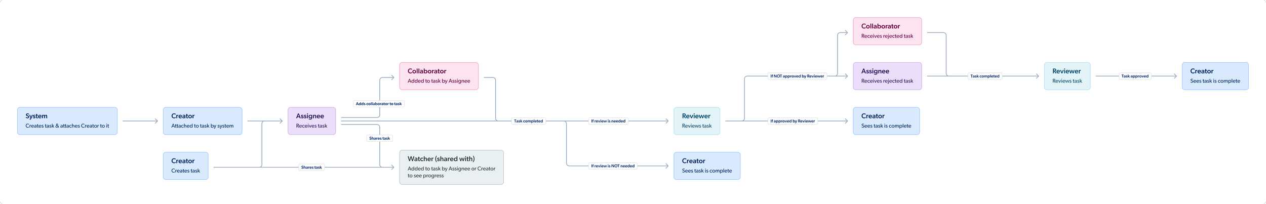 To personalize the task system experience, we had to zoom out to look at the system as a whole and how each user in a workflow connects within it.
