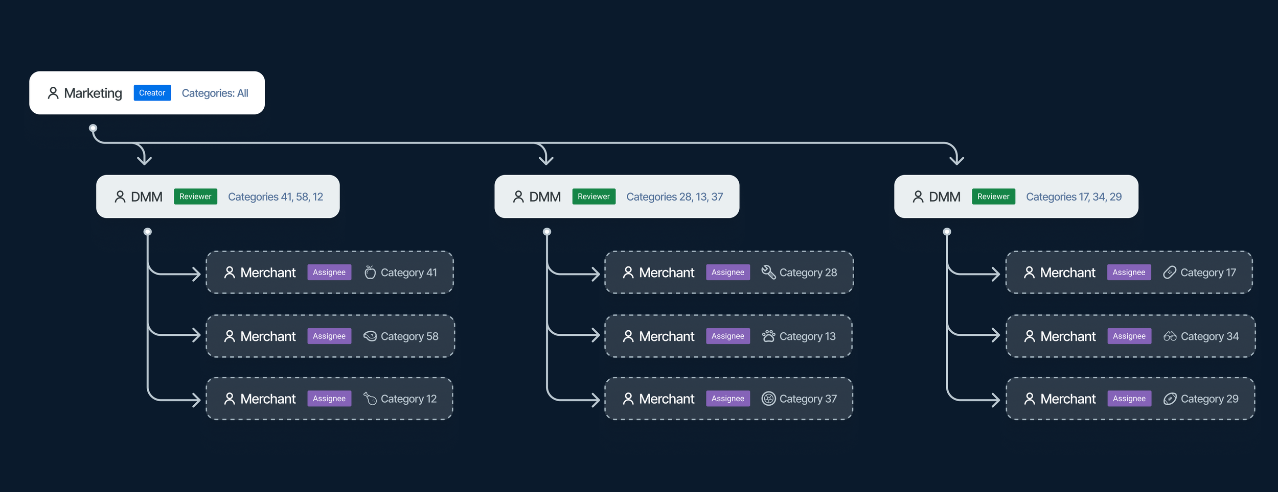 Through validation with other individual contributor roles apart from merchants, we discovered that some user roles needed a more in-depth breakdown of their tasks due to the fact that they were responsible for multiple categories, whereas merchants only owned a single category.