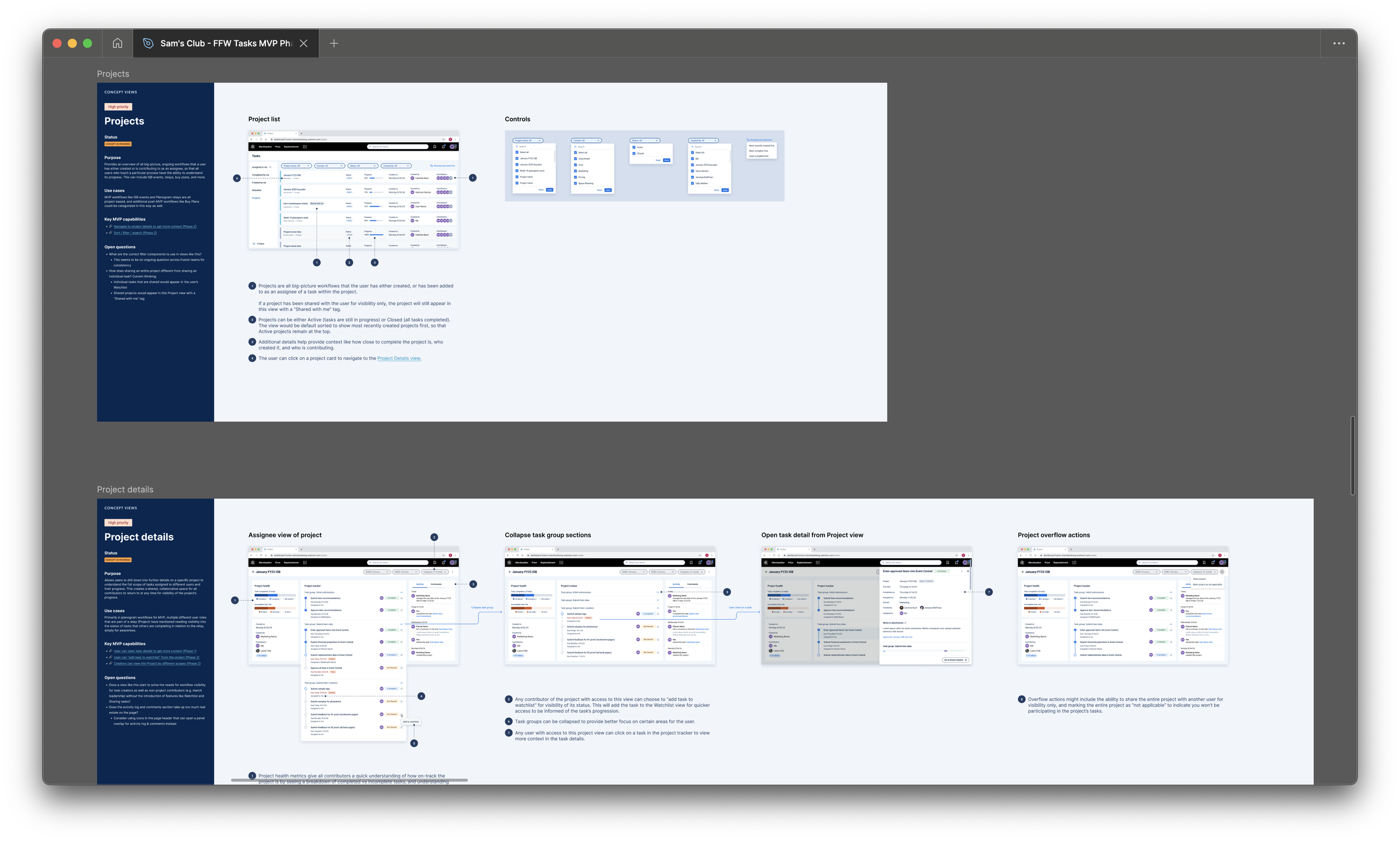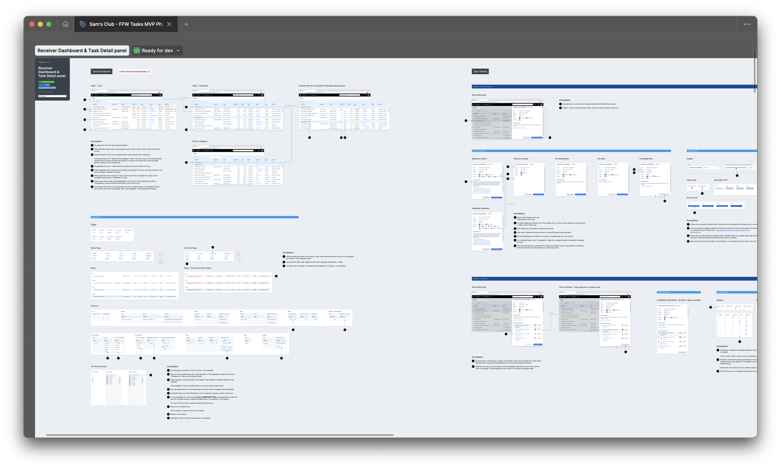 Our MVP Phase I delivery included detailed edge case and state design for 7 core documentation areas, including a breakdown of the dashboard and detail panel, along with flows for updating task statuses, filtering and searching through tasks, and more—ensuring a fully functional experience for the first product release.