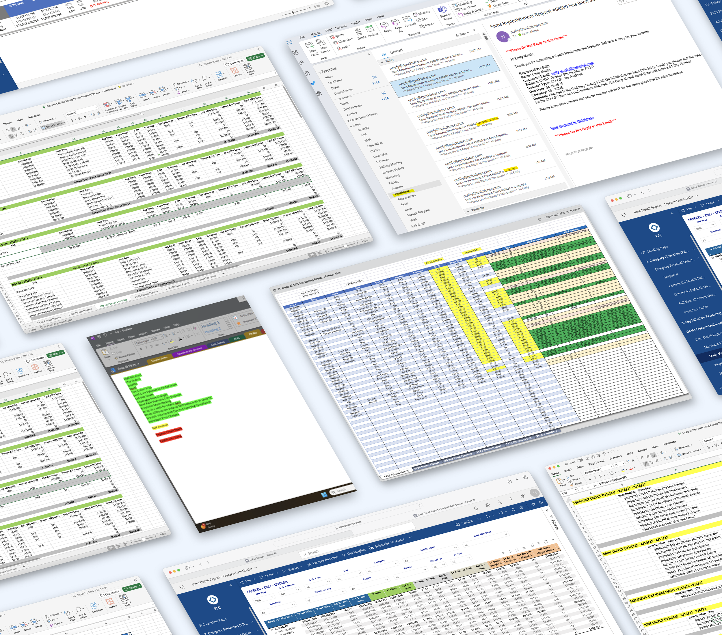 After spending hours just understanding what needs to be done, merchants will organize folders in their email to reference these documents constantly—the various requirements and deadlines in a workflow, important item-related data, and jump-off links to go accomplish the work in different tools.